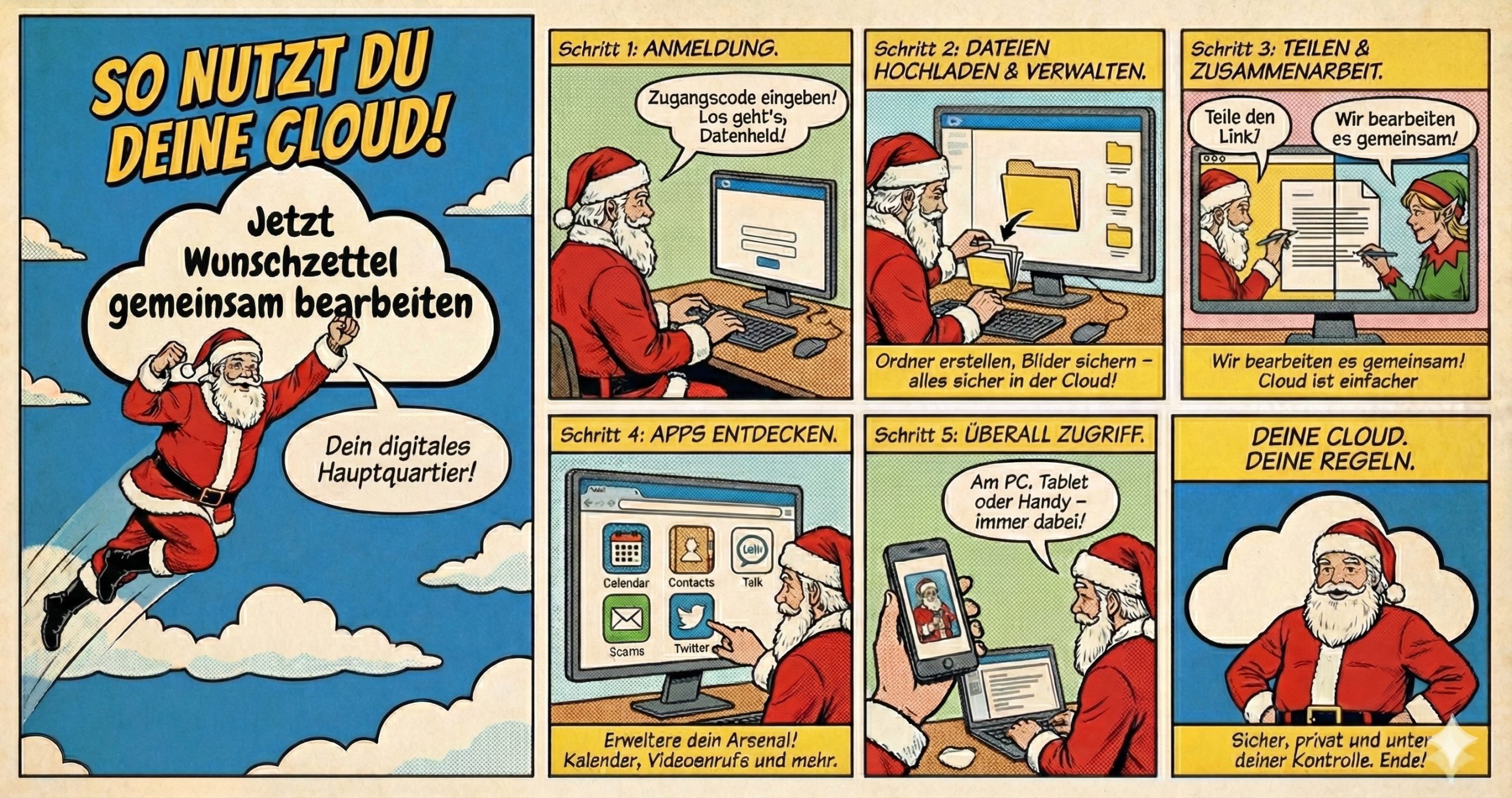 Die Wolkesicher-Cloud basiert auf der Open-Source-Software Nextcloud und dient als zentrale Plattform für alle wichtigen Daten.